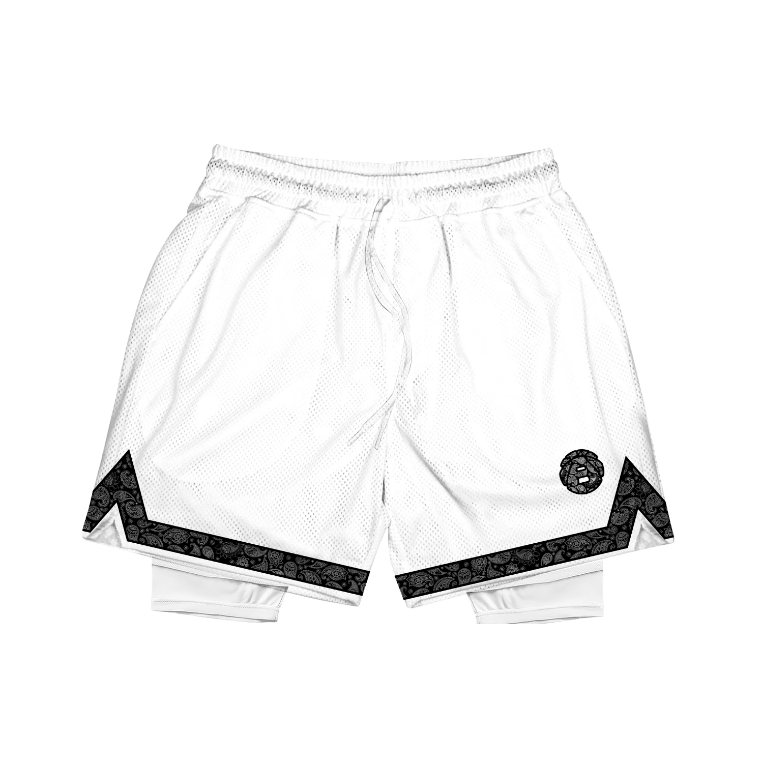 The Ballers Classic Bandana Mesh Shorts blend classic streetwear energy with game-ready performance. Designed with a bold bandana print border and built-in cycling shorts for added comfort and coverage — this piece is made for players who move with style and confidence, on or off the court.